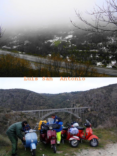 La verdad es que con el clima tan adverso de este año es una proeza hacer en vespa un viaje como ese, pero como se suele decir "sarna con gusto no pica".