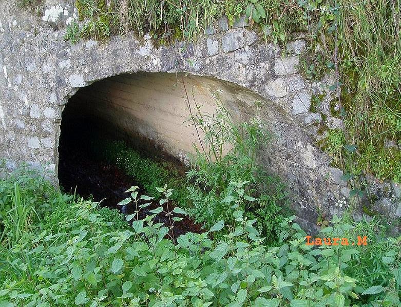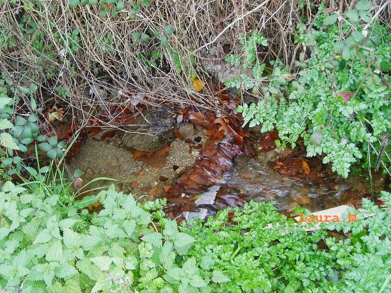 Las hojas se amontonan en el pequeño regato y el agua se las va llevando.